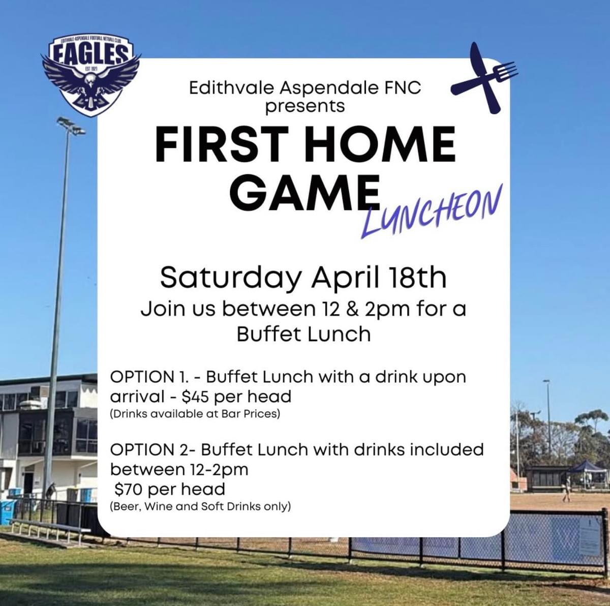 Whilst our first game is just 3 days away, our first home game at the nest is fast approaching. Grab a ticket to our First Home Game Luncheon and catch our Footballers and Netballers in action against Mt Eliza!